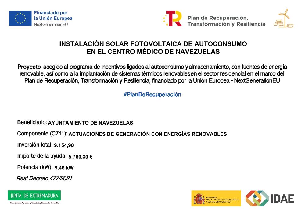 PROYECTO ACOGIDO AL PROGRAMA DE INCENTIVOS LIGADOS AL AUTOCONSUMO Y ALMACENAMIENTO, CON FUENTES DE ENERGIA RENOVABLE, ASI COMO A LA IMPLANTACION DE SISTEMAS TERMICOS RENOVABLES EN EL SECTOR RESIDENCIAL EN EL MARCO DEL PLAN DE RECUPERACION, TRANSFORMACION Y RESILIENCIA, FINANCIADO POR LA UNION EUROPEA-NEXTGENERATIONEU.